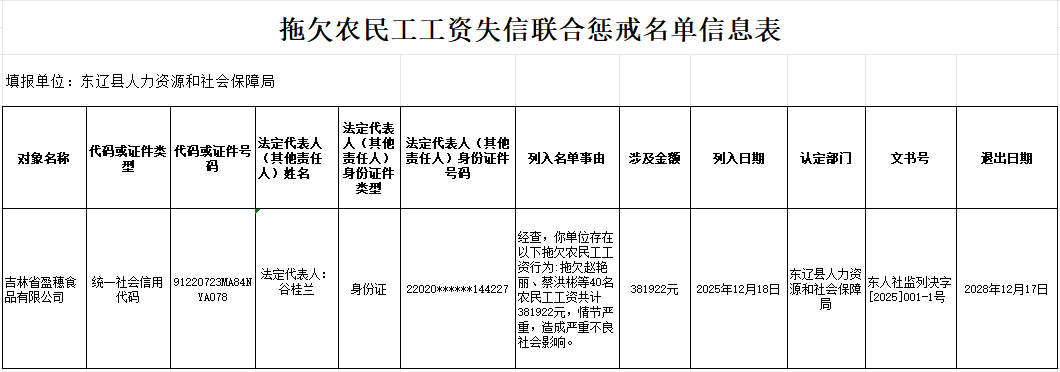 2025年12月拖欠农民工工资失信联合惩戒名单信息表