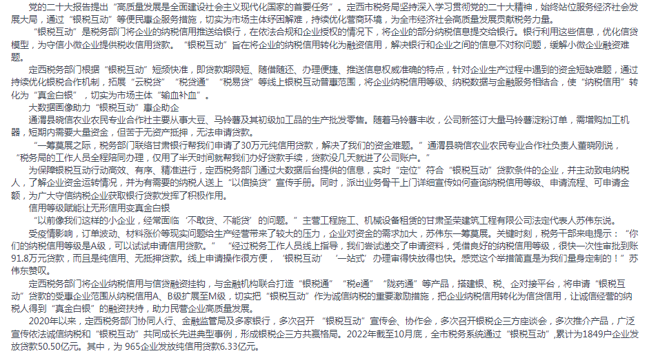 甘肃定西:以信换贷 “银税互动”解小微企业融资难题